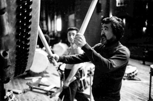 In 1975, Maki Ishii, a Japanese composer of contemporary classical music, traveled to Sado Island on the strong recommendation of conductor Seiji Ozawa, who had seen Kodo’s antecedent group Sado no Kuni Ondekoza perform in Boston in April that year. In the months that followed his first encounter with the group, Ishii made several trips to Sado, spending time with the Ondekoza members and learning about various ways of playing Japanese taiko drums. He drew on this experience to compose two pieces: Monochrome for the taiko ensemble alone, and a collaborative work for taiko and orchestra, Mono-Prism. Ondekoza premiered Monochrome in February 1976 in Tokyo at the Japan Germany Modern Music Festival. Then in July, they appeared at Tanglewood Music Festival in the USA for the debut performance of Mono-Prism with the Boston Symphony Orchestra, conducted by Ozawa. This reverberant modern music performance was met with the highest acclaim and went on to receive the 1977 Otaka Prize.
