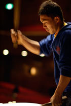 舞台から受ける沢山の刺激が、演出や演奏の原動力となっているようですね。太鼓を叩くという行為から、何か得るものはありますか?僕は、太鼓を叩くということは、躍ることに似ていると思っています。稽古中、繰り返し繰り返し、身体が無理なく無駄なく自然に動くまでひたすら叩き続け、リズムが自分の呼吸のように馴染むまで繰り返し歌う。そんな中に気持ちと呼吸と身体と音が全部ひとつになる瞬間があったりするのです。身体と音と心が一斉に躍りだすような、そんな瞬間...。そうしたとき、自分というよりは太鼓を叩いているその人の全部が、ものすごく魅力的にみえてきて、どれだけ汗だくで汚くても、瞬間的にむちゃくちゃぶさいくな顔になっちゃってても、素敵なんですよ。