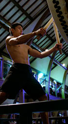初めて『三宅』のメンバーに入れたとき、個人稽古をつけてもらっていたのですが、最初の一発目の「ドン」がなかなかうまく打てず、「ドン!」と打っては「だめ、もう一回」のくり返しで、延々それだけ一時間以上繰り返していました。だんだん体力もなくなって、フラフラになり気持ちも折れてくるころにも「もっともっと気持ちを入れて打て!!!」と怒鳴られたりして、もうどうしようもなく追い詰められてヤケクソで一発打ったら、やっと「最初からそれを出してよ!!」と言われました。